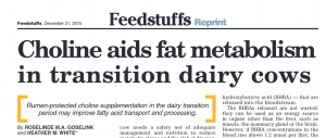 See the series of articles for quick reads on the biology of choline and how it aids in liver fat metabolism in dairy cows. The first (Ric Grummer) and second (Roselinde Goselink and Heather White) were published in December 2015 and the third article (Heather White) was published early in 2016.