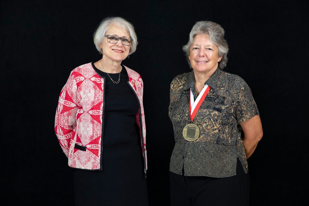 CALS Dean Kate VandenBosch with award-winner Dr. Barbara Barton. Thanks to Michael P. King for the photo.